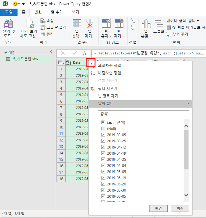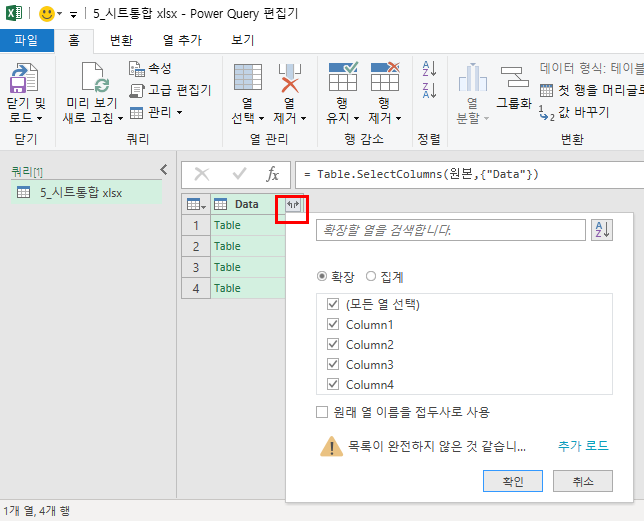 여기까지만 다르고 하단은 파워쿼리 다루는 방법이랑 동일하다.