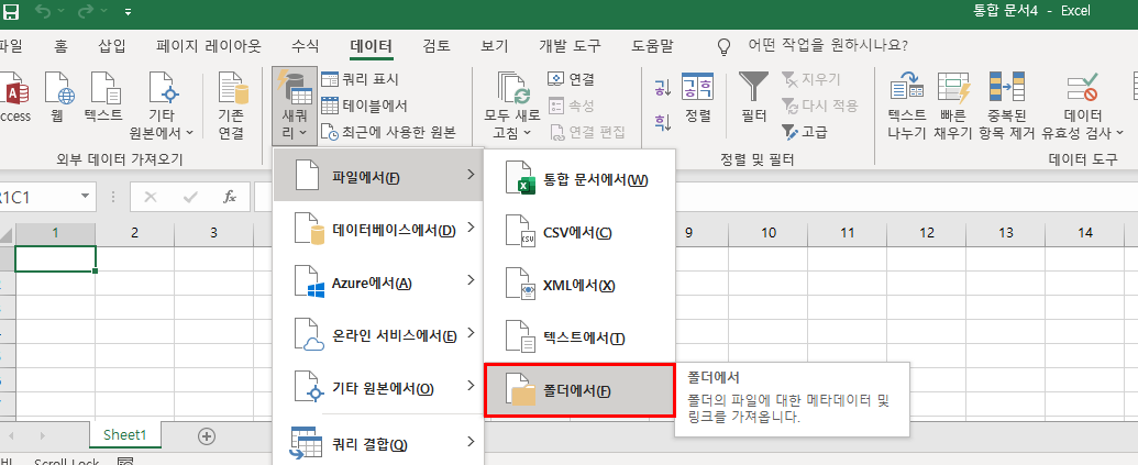 만약 폴더에 새로운 엑셀 파일이 추가되면 그것과도 연동이 가능하다.