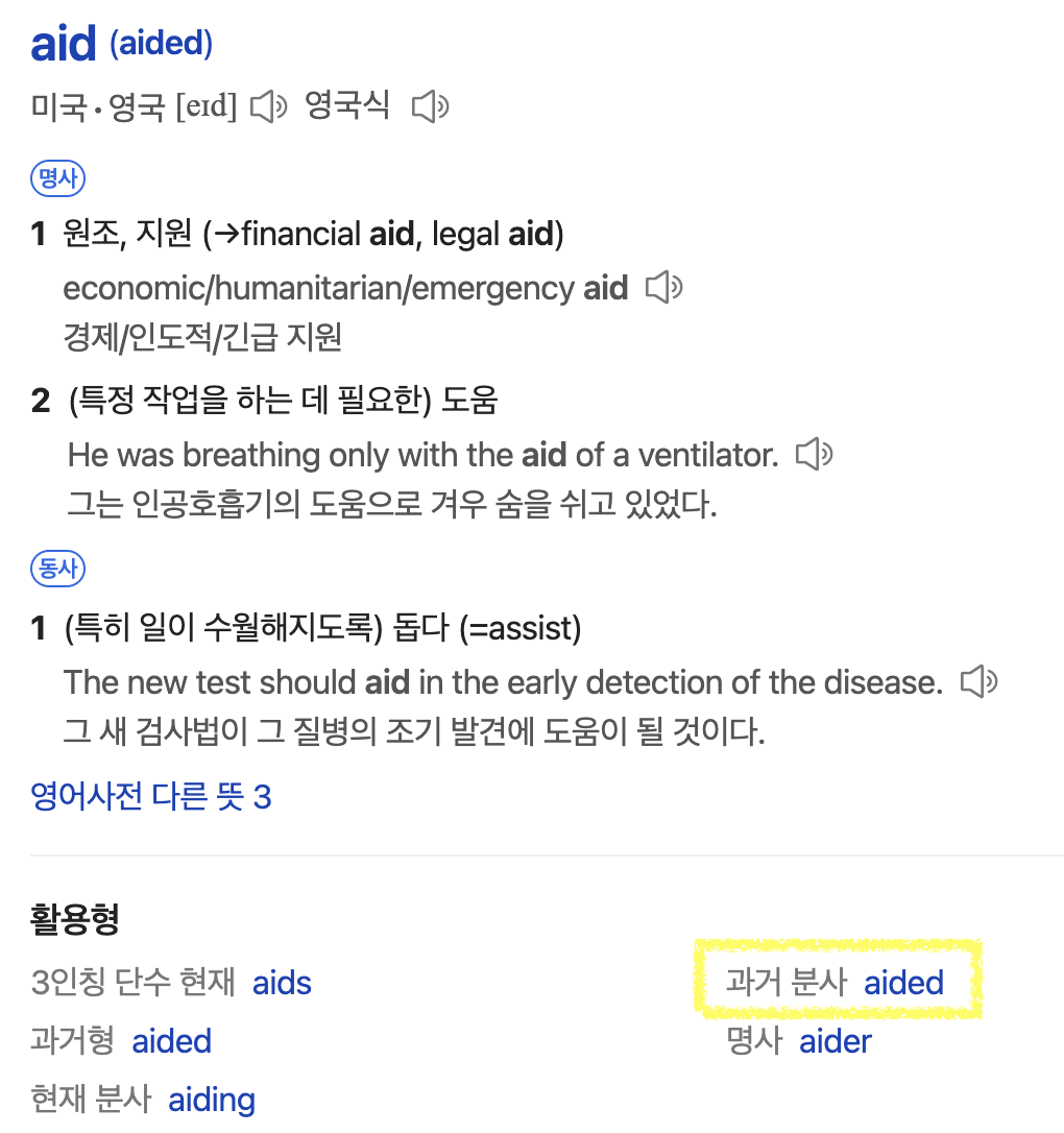 - 원조, 지원 (→financial aid, legal aid)