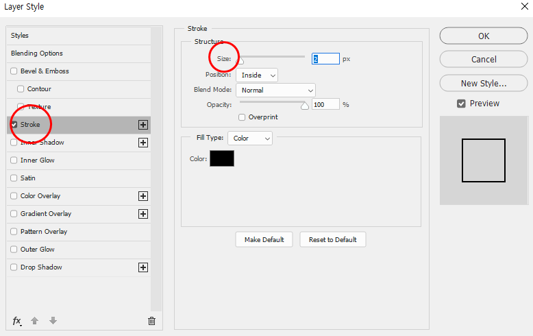 텍스트 레이어를 더블클릭했을때 나오는 layer Style을 확인한다