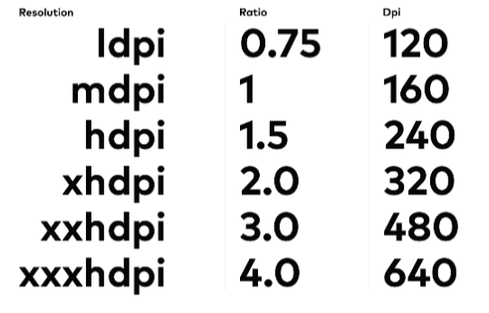 조금 아득해보이지만 알고 보면 아무것도 아닌 녀석들입니다. 각 기기별로 해상도가 다르기 때문에 DPI가 다르고 DPI에 맞는 비율이 다릅니다. 때문에 어플 속 한 개의 아이콘을 만들 때 총 6가지 해상도에 맞춘 아이콘을 제작해야 한다는 의미입니다.