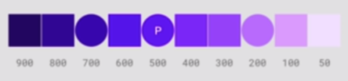 기본값을 500으로 두고 900~0 사이의 값을 두고 만들어 적용을 해야 합니다. 주조색과 900~0의 색상 모두가 중요합니다. 그리고 반드시 사용을 해야합니다. 왜냐하면 화면 분할에 차지하는 크기와 구간이 다를 경우에 해당 색상을 정확하게 인지를 할 수 없는 경우가 생기기 때문입니다.